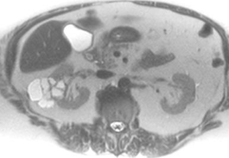 Figure 1: T2 Weighted MRI of a multi-Cystic right renal mass.