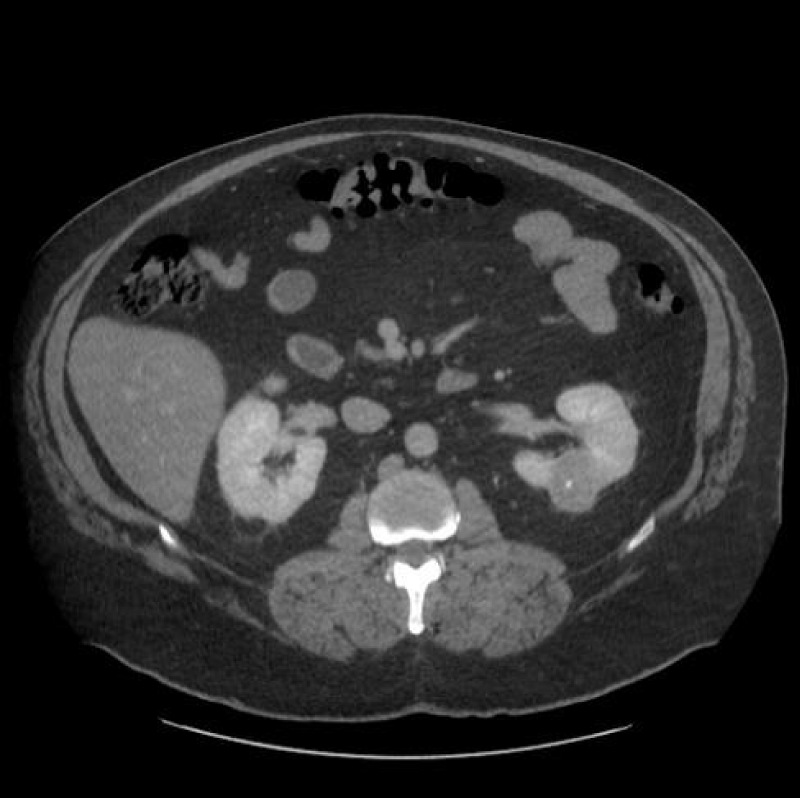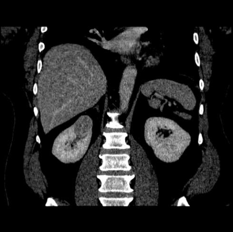 CT scan is the most important imaging modality to evaluate renal neoplasms. A contrast-enhanced Multidetector CT (MDCT) is preferred, where a triple-phase helical CT scan is utilized for thin collimation and a superior spatial and temporal resolution. Opacification of the alimentary tract may help distinguish bowels from lymph nodes. The dedicated protocol constitutes an initial ‘pre-contrast’ phase, followed by intravenous (IV) contrast administration. The ‘Corticomedullary’ (CM) phase is seen 25-30 seconds post-contrast, followed by the ‘Nephrogenic Phase’ (NP) seen 70 seconds to 180 seconds later. Eventually, after 7 minutes to 10 minutes the ‘Excretory Phase’ images may be retrieved. Either of the above-mentioned postcontrast acquisitions can be obtained tailored according to the indication for the study, although with the added increased radiation dosage risk [1,2,5,6].