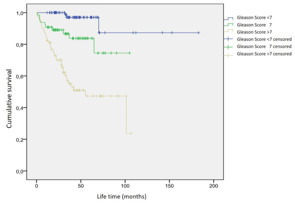Figure 4: Survival analysis of patients in the Gleason score subgroups.